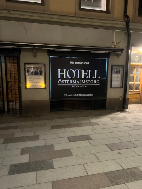 Min skylt sitter placerad mellan Hedvig Eleonora kyrka och Östermalms saluhall, där många människor passerar varje dag. På kvällstid blir det dock mörkt, med lite belysning på timer syns skylten betydligt bättre.