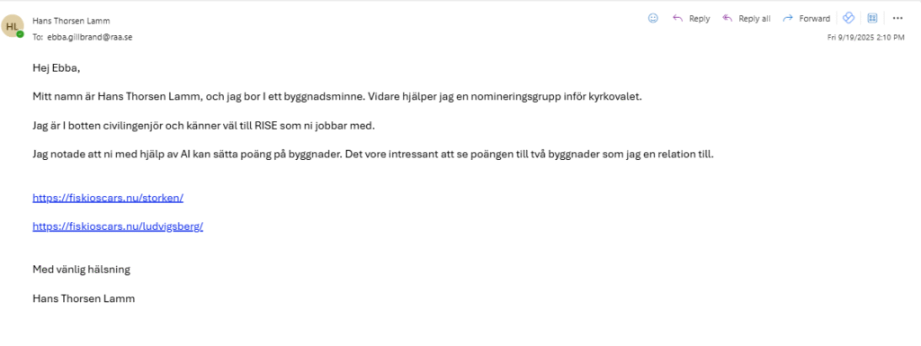 Till en början testade forskarna att helt enkelt fråga en Al och andra språkmodeller om en värdering av byggnaderna från 1 till 100 utifrån kulturhistoriska värden.